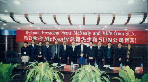 3月16日深夜,Sun公司董事長(zhǎng)、全球總裁兼CEO 司各特.麥克尼利(ScottMcNealy)抵達(dá)北京,開始了他備受矚目的第三次中國(guó)之行。 而在此次安排緊籌的日程里,與賽爾網(wǎng)絡(luò)高層的會(huì)談是麥克尼利先生第一天的重要內(nèi)容。 17日上午9:30,麥克尼利先生來到賽爾網(wǎng)絡(luò)東方廣場(chǎng)辦公區(qū),與公司高層進(jìn)行座談,受到熱烈歡迎。