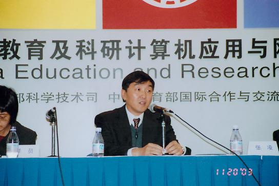 中國的教育信息化建設以1984年中國教育與科研計算機網CERNET的投入建設為標志,九年來為我國的教育信息化建設做出了貢獻。當天,教育部科技司司長謝煥忠向全體與會代表著重介紹了未來五年,教育信息化發(fā)展的建設構想。其中包括以下一代CNGI建設和十五、211、CERNET公共服務體系建設為代表的五大基礎設施建設,和以中國教育與科研計算機網格ChinaGrid建設為代表的六大網絡應用。