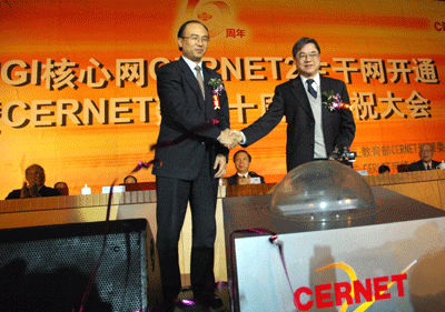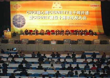 近日,作為CNGI核心網(wǎng)CERNET2主干網(wǎng)開通暨CERNET建設(shè)十周年慶祝盛典的主要活動,“中國下一代互聯(lián)網(wǎng)示范工程CNGI核心網(wǎng)CERNET2主干網(wǎng)開通暨CERNET建設(shè)十周年慶祝大會”在北京國際會議中心隆重舉行,眾多國家部委領(lǐng)導(dǎo)以及長期關(guān)心CERNET建設(shè)和發(fā)展的相關(guān)單位的領(lǐng)導(dǎo)和專家均出席并致賀。此外,共有來自各省、市教育主管部門和全國高校主管領(lǐng)導(dǎo)、專家和網(wǎng)絡(luò)中心代表,以及多年來幫助和關(guān)心CERNET發(fā)展的國際友人、重要互聯(lián)網(wǎng)國際組織和團體的代表約1500余人參加了此次盛會。會上,國家發(fā)改委、科技部、信息產(chǎn)業(yè)部、國務(wù)院信息化工作辦公室、教育部、中國科學(xué)院、中國工程院、國家自然基金會等八部委聯(lián)合宣布,中國第一個下一代互聯(lián)網(wǎng)暨中國下一代互聯(lián)網(wǎng)示范工程核心網(wǎng)(CERNET2)正式開通,這是世界上規(guī)模最大的純Ipv6(互聯(lián)網(wǎng)協(xié)議第6版)互聯(lián)網(wǎng),標(biāo)志著我國下一代互聯(lián)網(wǎng)建設(shè)全面拉開序幕,并在世界下一代互聯(lián)網(wǎng)發(fā)展上取得先機。