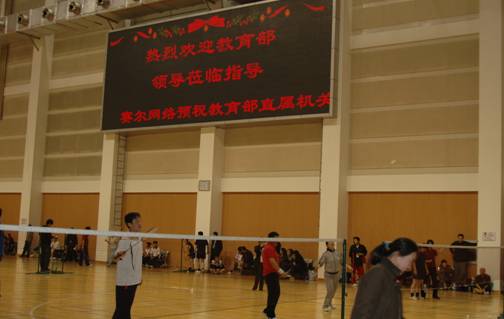 由教育部直屬機關工會主辦、教育部科技發(fā)展中心承辦、賽爾網(wǎng)絡有限公司協(xié)辦的“2007年‘賽爾杯’教育部直屬機關職工羽毛球比賽”于11月14日在北京郵電大學羽毛球館正式開球比賽。來自教育部機關、直屬單位的31個代表隊,以及20多位司局長參加比賽。本屆比賽持續(xù)三天,將在16日進行決賽與頒獎。