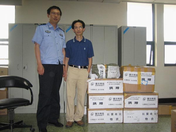 地震發(fā)生后,賽爾網(wǎng)絡(luò)積極參與抗震救災(zāi)工作,5月19日,在與公安部溝通中得知戰(zhàn)斗在抗災(zāi)第一線的成都市公安局急缺公安專用通信設(shè)備,公司緊急購(gòu)買了五套TK850常規(guī)轉(zhuǎn)信臺(tái)設(shè)備發(fā)往成都市公安局,并委托四川分公司完成捐贈(zèng)設(shè)備的交付工作。