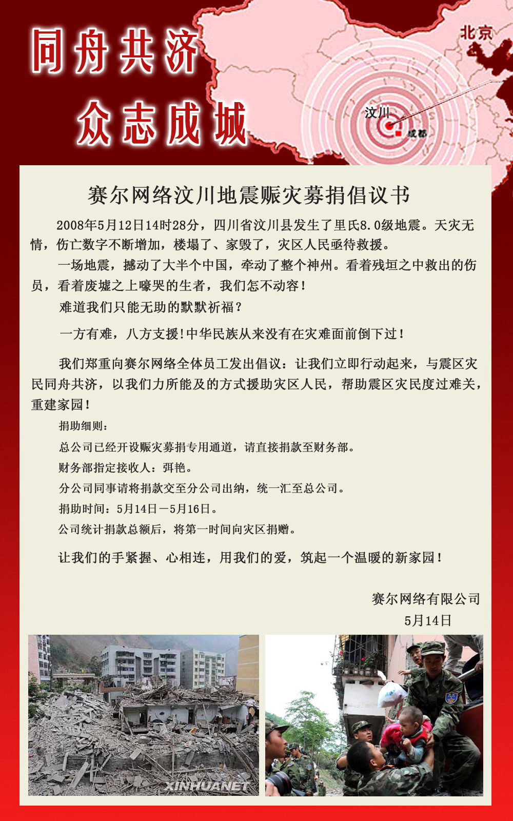 賽爾網(wǎng)絡(luò)汶川地震賑災(zāi)募捐倡議書