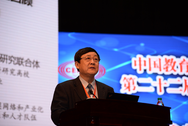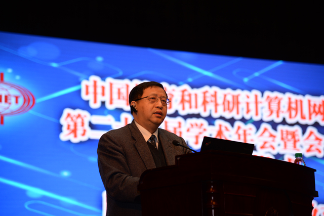 CERNET專家委員會主任、清華大學(xué)教授吳建平做《CERNET新進(jìn)展和未來發(fā)展思考》的報(bào)告