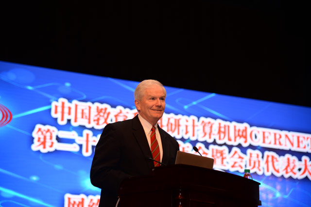 教育部科技司司長王延覺在致辭中表示,CERNET作為我國教育信息化和國家信息化的重要基礎(chǔ)設(shè)施,同樣面臨轉(zhuǎn)型發(fā)展的挑戰(zhàn),如何從跟蹤模仿到創(chuàng)新發(fā)展和引領(lǐng)發(fā)展,如何在即將開始的"十三五"乃至今后的十年、二十年,為中國的互聯(lián)網(wǎng)發(fā)展和信息化進(jìn)程作出更大的貢獻(xiàn),是全體CERNET成員必須認(rèn)真思考的重大問題。借此機(jī)會,他對CERNET提出了三點(diǎn)希望:一是不斷提升CERNET的網(wǎng)絡(luò)質(zhì)量與服務(wù)水平,積極支持各類教學(xué)和管理應(yīng)用,為"十三五"期間全面推動教育信息化工作,為構(gòu)建網(wǎng)絡(luò)化、數(shù)字化、個(gè)性化、終身化的教育體系,提供更先進(jìn)、更安全的網(wǎng)絡(luò)環(huán)境;二是聯(lián)合CERNET各節(jié)點(diǎn)高校,承擔(dān)國家未來網(wǎng)絡(luò)重大科技基礎(chǔ)設(shè)施和網(wǎng)絡(luò)空間安全重大科技項(xiàng)目,繼續(xù)推動下一代互聯(lián)網(wǎng)的發(fā)展和技術(shù)創(chuàng)新,保持在國際國內(nèi)的技術(shù)領(lǐng)先優(yōu)勢,爭取為國家做出更大貢獻(xiàn);三是吸引更多年輕人參與互聯(lián)網(wǎng)技術(shù)研究,鼓勵開發(fā)創(chuàng)新型應(yīng)用,培養(yǎng)更多國家需要的網(wǎng)絡(luò)信息安全和網(wǎng)絡(luò)技術(shù)創(chuàng)新人才。