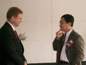 賽爾網(wǎng)絡(luò)及合作伙伴聯(lián)想國際,Intel,HP,IBM代表現(xiàn)場回答記者提問國家發(fā)改委、教育部、清華大學(xué)的領(lǐng)導(dǎo)與賽爾網(wǎng)絡(luò)董事長梁猷能先生
